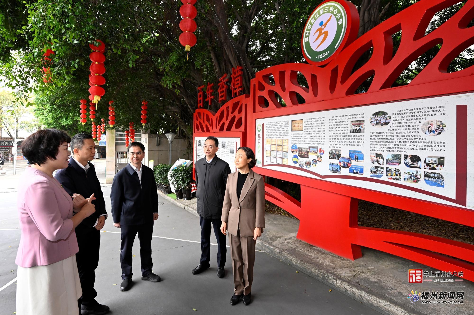 百年喷鼻樟掩映下的台江第三核心小学书声琅琅。郭宁宁、领会学校成长过程、办学特色等环境,强调要“五育并举”,深化体教融合,打制特色课程、精品课程,持续提拔办学质量和程度;要用好市藏书楼等资本,加强馆校联动,正在校园内构成爱读书、读好书、善读书的稠密空气。